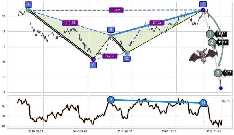 ➣ 已完成【蝙蝠】形态起点X: 2019-05-02, 终点D: 2020-02-12, 共198交易日