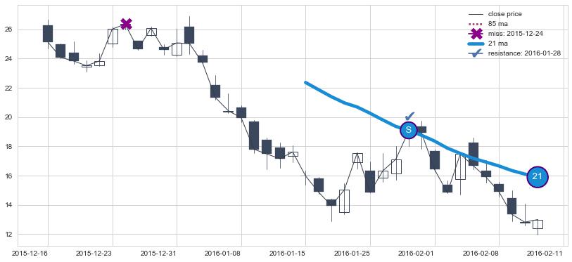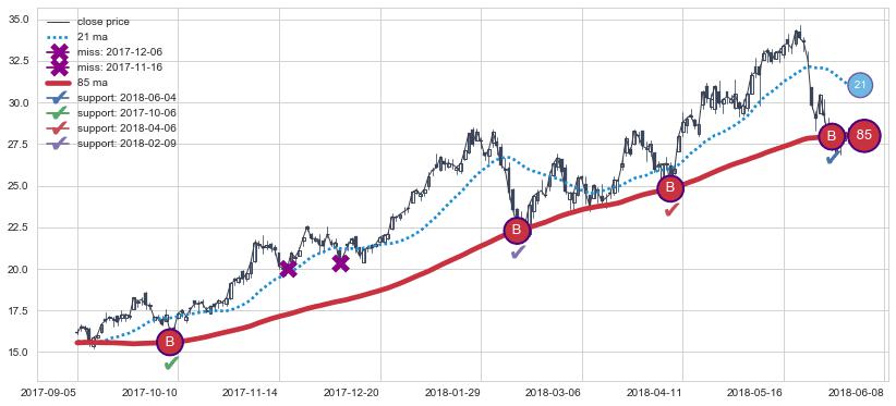 ⚁ MA3和MA8走势平行,且始终保持在短距离内,MA21始终在短中期均线上方,与短中期均线保持一定的距离,微微下行