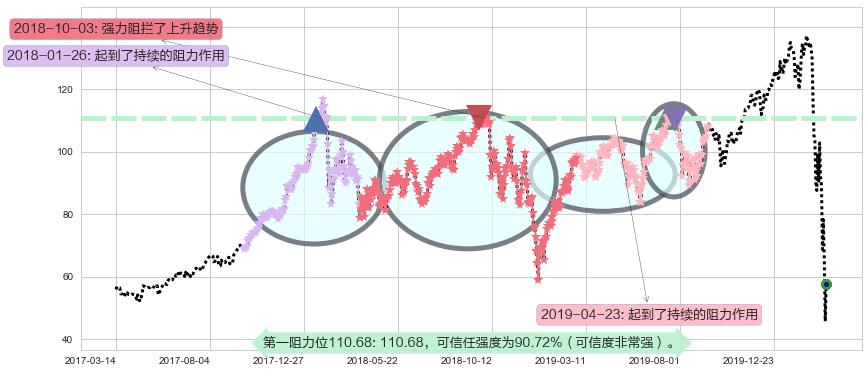 ♘ 阻力价格位110.68,可信任强度90.72%,距离最后交易2020-03-13形成的收盘价格57.77相差 +91.59%