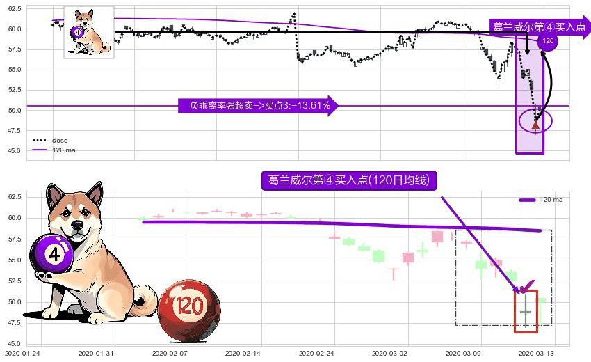 ⚀ 2020-03-12-日显现 葛兰威尔均线 120日均线 第④买入点 下降趋势均值回复的短线反弹信号,后市看涨,买进信号