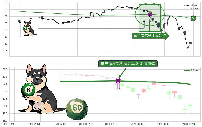 ⚀ 2020-02-24-日显现 葛兰威尔均线 60日均线 第⑥卖出点 走势反转见顶信号,后市看跌,卖出信号