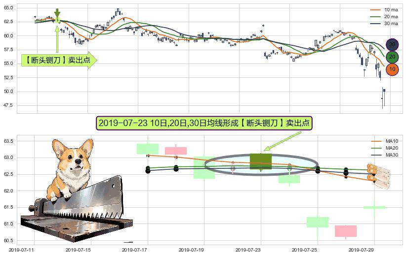 ⚀ 2019-07-23日显现 10日-20日-30日均线 【断头铡刀】卖出点 看空信号,后市看跌,卖出