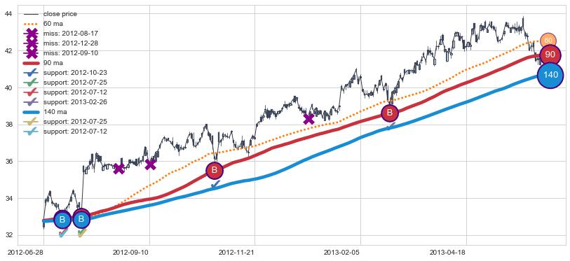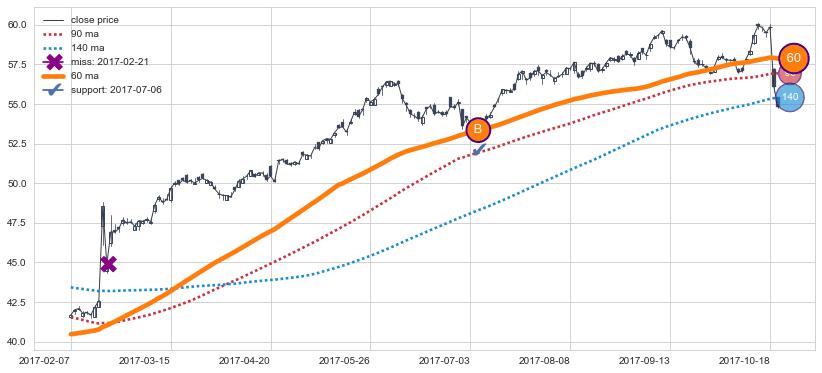 ⚃ 在破位点附近ma走势已有下垂迹象,稍后的走势中ma下降趋势明显,信号【可信度高】