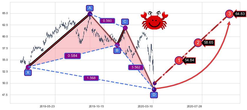 ➣ 已完成【螃蟹】形态起点X: 2019-03-06, 终点D: 2020-03-12, 共258交易日