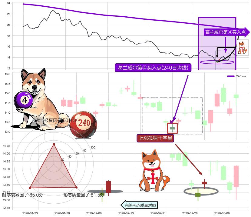 | 3 🅚:旭日东升 ➕ 🎢:葛兰威尔第④买入点买入点信号形成后,猜想后续走势持续反弹上升(均值回复) ☞ 看多信号 ⇥ 【均线】交织【🅚线】⇥ 综合量化分数: 58 | > |