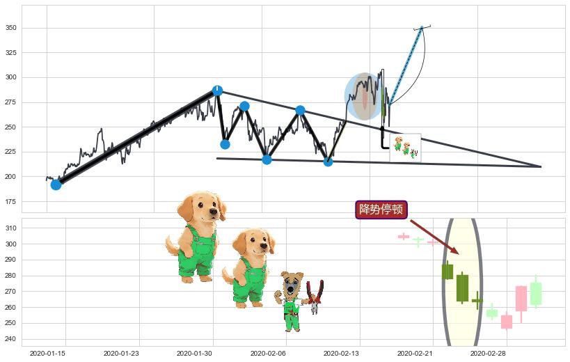 | 3 🅚:多方尖兵 ➕ 📐:降楔型向上突破击穿阻力位, 猜想持续拉升上涨,被突破的阻力位已变为支撑位 ☞ 看多信号 ⇥ 【🅚线】交织【图形】⇥ 综合量化分数: 51 | > |