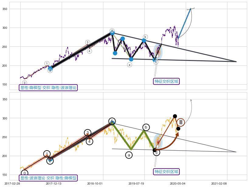 ➢ 规则平台型:子浪335结构,ⓐⓑ振幅接近,ⓒ点稍微超过ⓐ点结束位置
