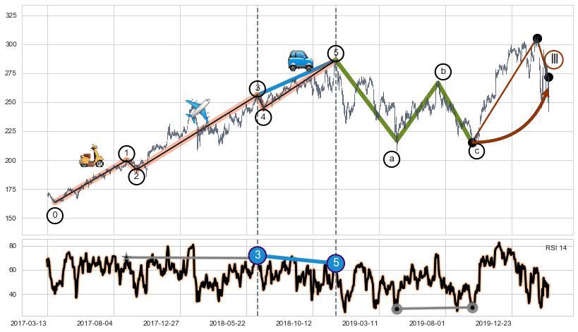 ➣ a,c调整浪RSI走势未出现明显背离