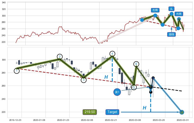 ➢ 【卖1】: 激进型 卖点→(2020-03-12: 258.39 )形成突破头肩顶【反转】形态