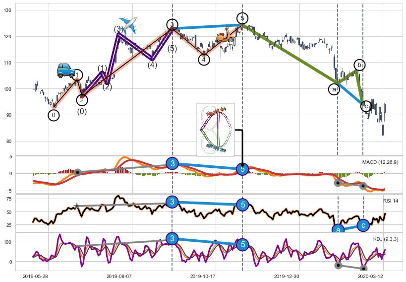 ➢ 1,3,5驱动浪MACD, RSI, KDJ走势都出现【常规背离】反转信号增强