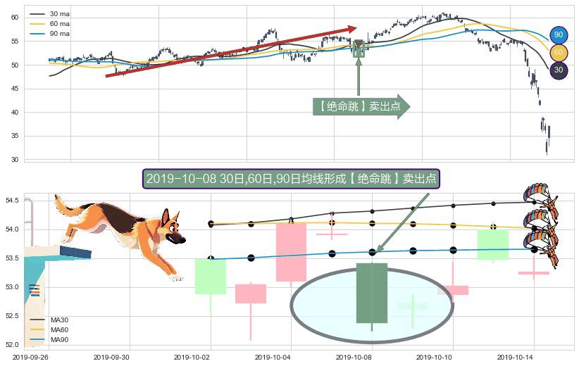 形态多维评估: ⚀ 2019-10-08日显现 30日-60日-90日均线 【绝命跳】卖出点 看空信号,后市看跌,卖出