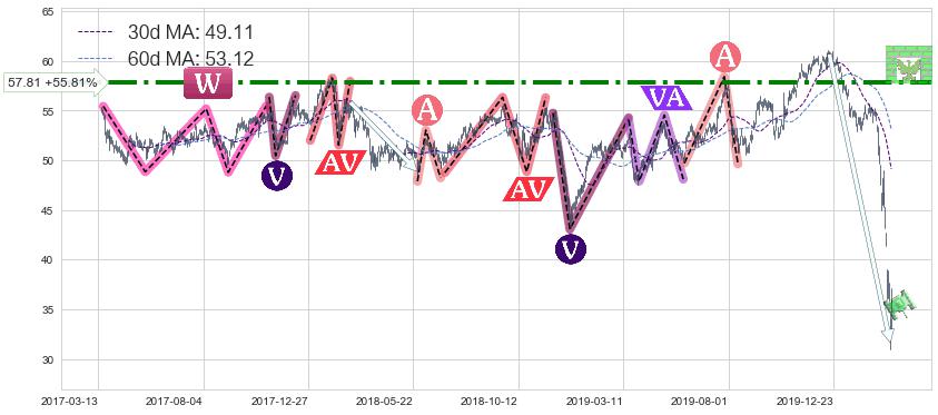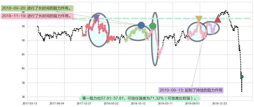 ♘ 阻力价格位57.81,可信任强度71.32%,距离最后交易2020-03-13形成的收盘价格37.10相差 +55.81%