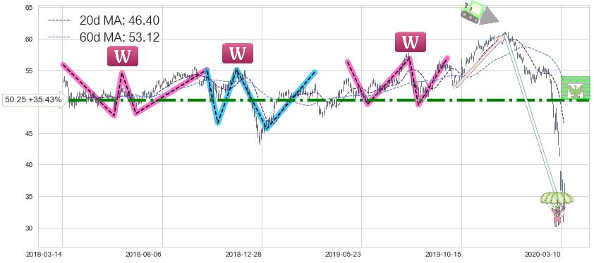 ♘ 阻力价格位50.25,可信任强度83.76%,距离最后交易2020-03-13形成的收盘价格37.10相差 +35.43%