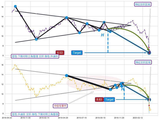 ➢ 升旗形target支撑拐点上涨 🔜 下降对称三角整理target支撑拐点上涨 综合量化分数:53.03 【中性】