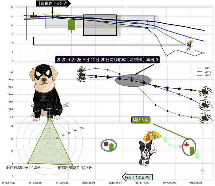 ➣ 倾盆大雨 + 【毒蜘蛛】卖出点毒蜘蛛均线交叉卖出点信号叠加后【目标达成率】极高,【看空】信号叠加【存续影响极小】