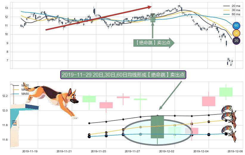 ⚀ 2019-11-29日显现 20日-30日-60日均线 【绝命跳】卖出点 看空信号,后市看跌,卖出