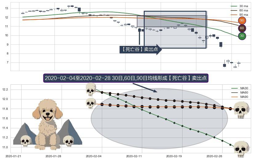 ⚀ 2020-02-05-日至2020-02-28-日显现 30日-60日-90日均线 【死亡谷】卖出点 看空信号,后市看跌,卖出