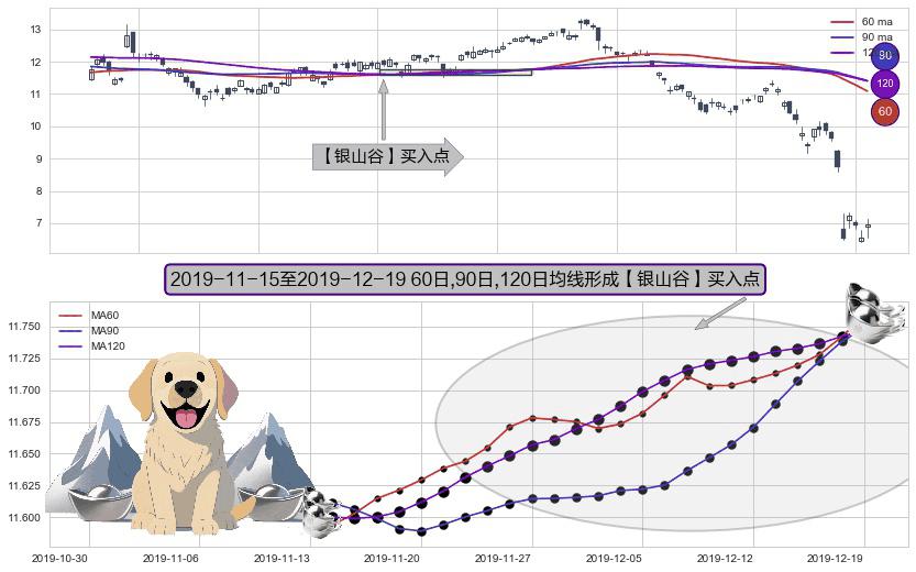⚀ 2019-11-18-日至2019-12-19-日显现 60日-90日-120日均线 【银山谷】买入点 看多信号,后市看涨,买入