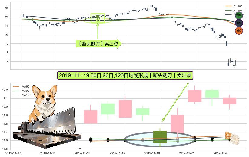 ⚀ 2019-11-19日显现 60日-90日-120日均线 【断头铡刀】卖出点 看空信号,后市看跌,卖出