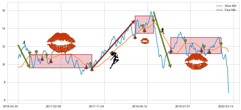 2016-07-12至2017-09-05 慢线与快线多次接触,存在上下穿越,有缠绕