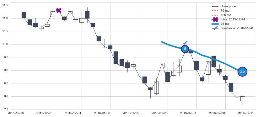 2015-12-16至2016-07-12 慢线与快线呈空头排列, 慢线与快线接触少,无缠绕