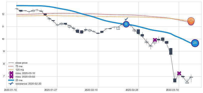 ⚀ 中期均线MA10下穿长期均线MA20形成的交叉是标准 死亡交叉