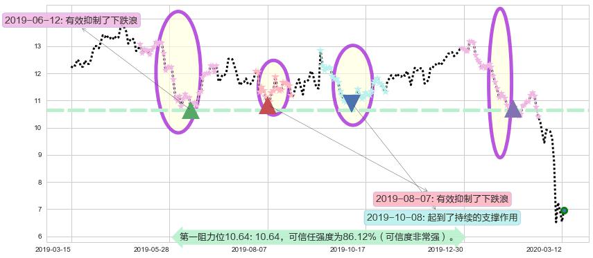 ♘ 阻力价格位10.64,可信任强度86.12%,距离最后交易2020-03-13形成的收盘价格6.96相差 +52.92%
