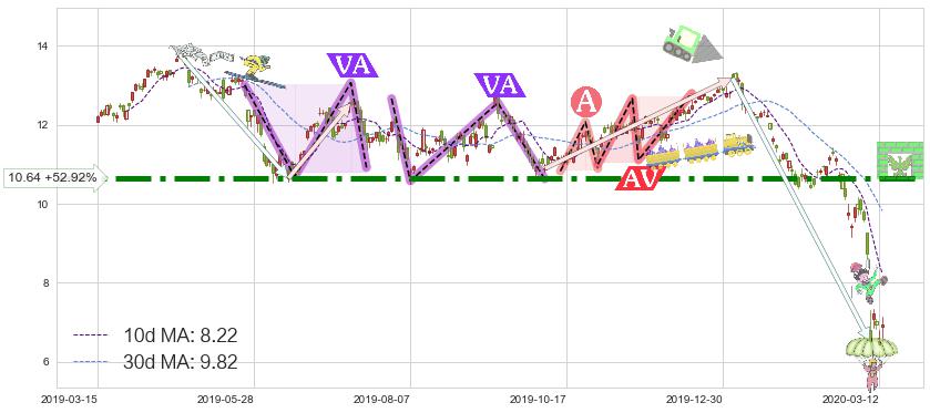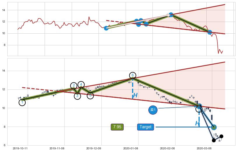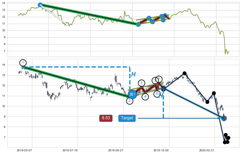 ➣ 【已达成】最小【反转】第一目标价格→(2020-03-09: 7.95 ), 后续继续【反转】下跌动力微弱,下跌较小