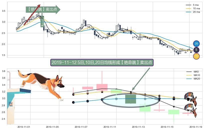 ⚀ 2019-11-12日显现 5日-10日-20日均线 【绝命跳】卖出点 看空信号,后市看跌,卖出