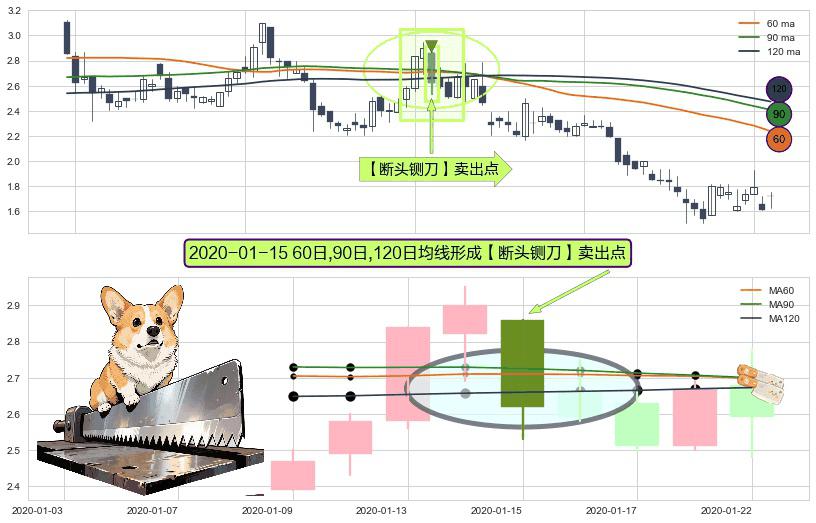 ⚀ 2020-01-15日显现 60日-90日-120日均线 【断头铡刀】卖出点 看空信号,后市看跌,卖出