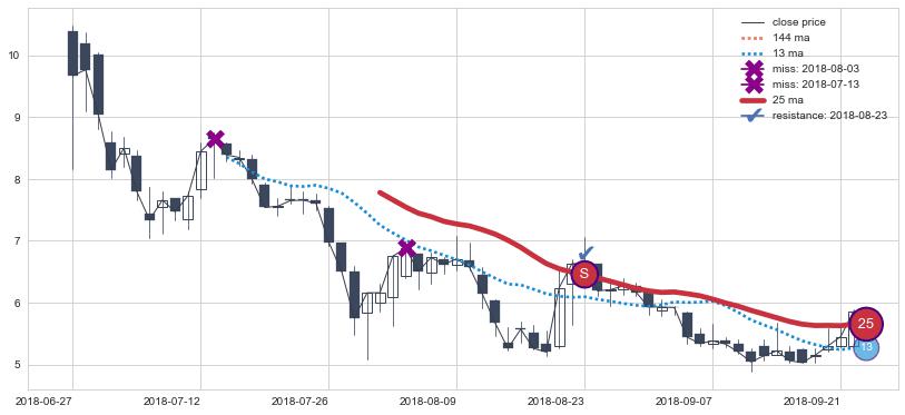 2018-06-27至2018-09-24 慢线与快线呈空头排列, 慢线与快线接触少,无缠绕
