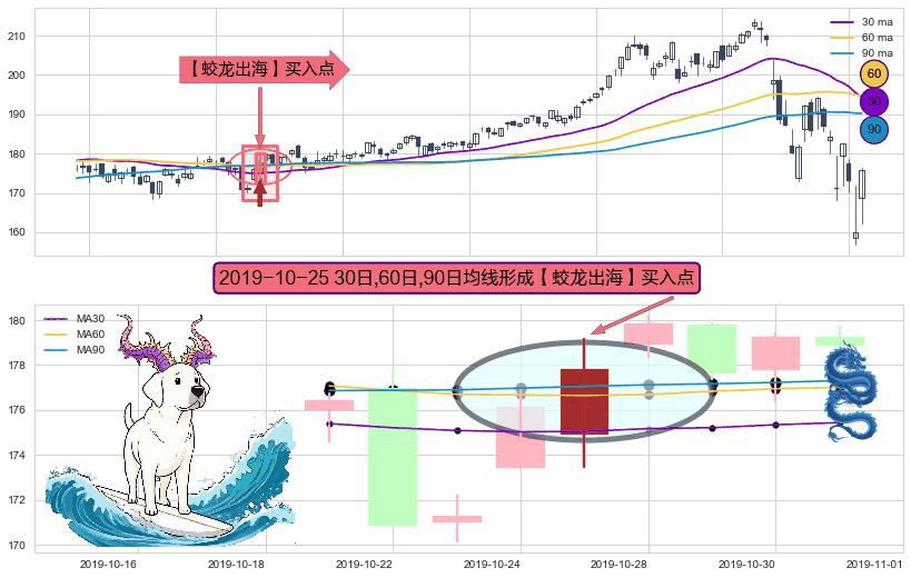 ⚀ 2019-10-25日显现 30日-60日-90日均线 【蛟龙出海】买入点 看多信号,后市看涨,买入