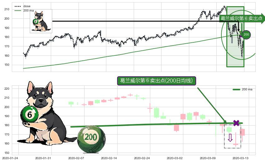 ⚀ 2020-03-11-日显现 葛兰威尔均线 200日均线 第⑥卖出点 走势反转见顶信号,后市看跌,卖出信号