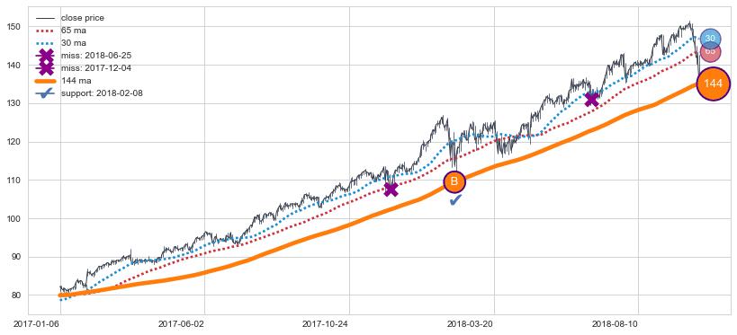 ⚃ 在破位点附近ma依然上升趋势比较明显,平稳迹象是在突破后一段时间后出现,信号【可信度低】