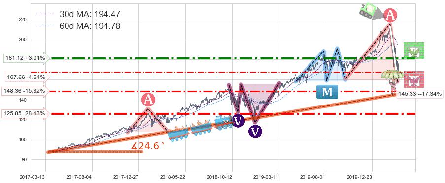 ♘ 支撑价格位167.66,可信任强度48.72%,距离最后交易2020-03-13形成的收盘价格175.83相差 -4.64%