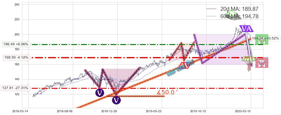 ♘ 阻力价格位186.49,可信任强度67.36%,距离最后交易2020-03-13形成的收盘价格175.83相差 +6.06%