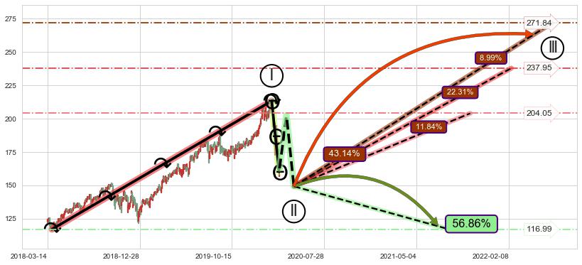 ➣ 高概率大级别循环上涨浪被破坏,反转向下(突破5浪起点)概率56.86%