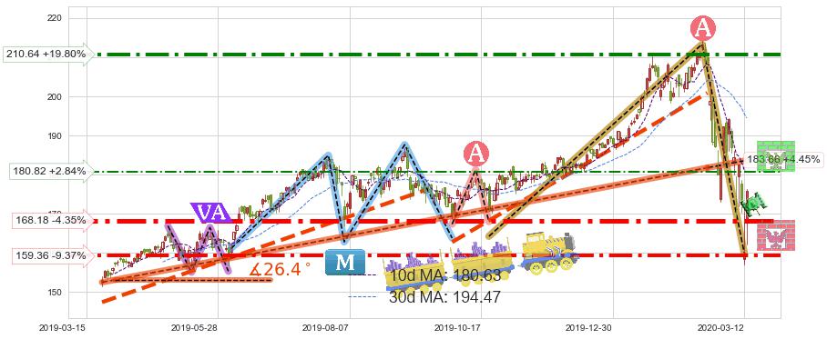 ♘ 阻力价格位180.82,可信任强度45.31%,距离最后交易2020-03-13形成的收盘价格175.83相差 +2.84%