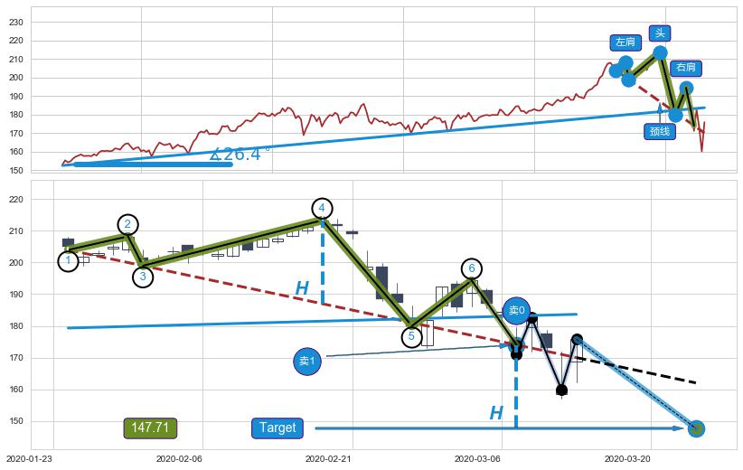 ➢ 【卖1】: 激进型 卖点→(2020-03-09: 174.02 )形成突破头肩顶【反转】形态
