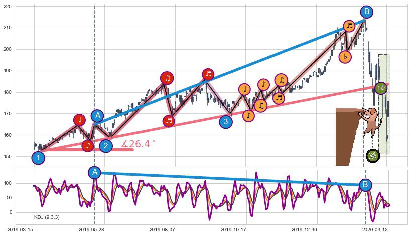 从2019-03-25至2020-02-21,共包含231个交易日,阶段股价上涨32.57%,阶段股价变动位移路程比: 1 : 6,上涨趋势角度: 26.4