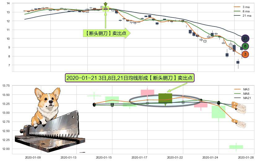 形态多维评估: ⚀ 2020-01-21日显现 3日-8日-21日均线 【断头铡刀】卖出点 看空信号,后市看跌,卖出