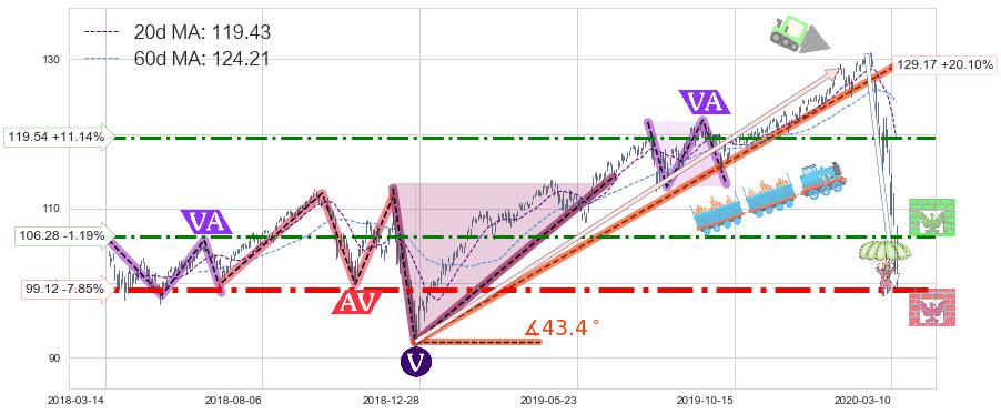 ♘ 支撑价格位99.12,可信任强度96.46%,距离最后交易2020-03-13形成的收盘价格107.56相差 -7.85%