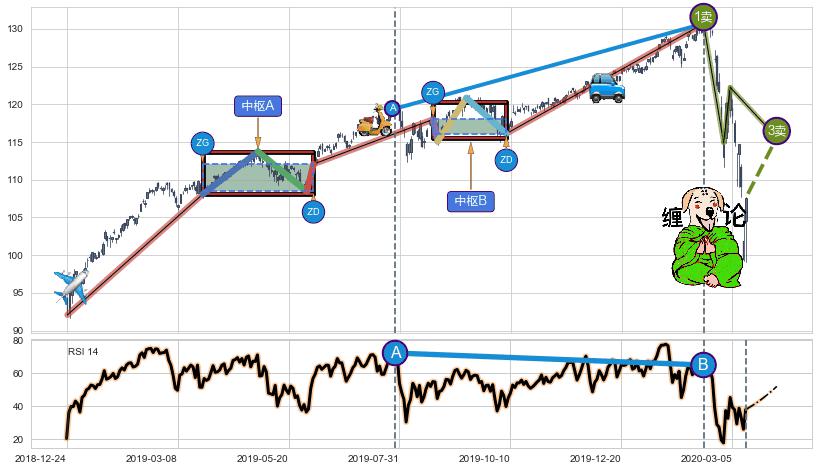 ➢ 缠论价格❶卖比A点高 ⤴,【RSI】指标B点比A点低 ⤵️