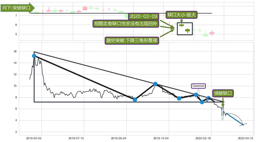 ➢ 2020-03-09形成:向下跳空【突破】缺口