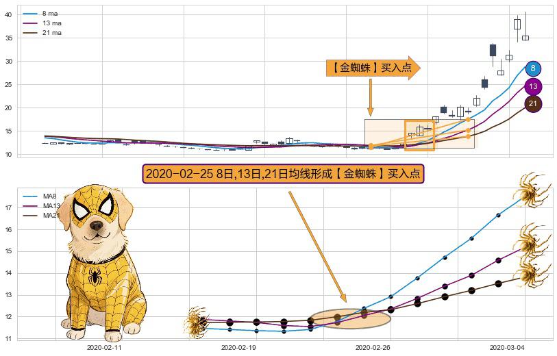 形态多维评估: ⚀ 2020-02-25日显现 8日-13日-21日均线 【金蜘蛛】买入点 看多信号,后市看涨,买入