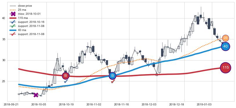 上涨趋势2018-09-21-2019-01-09,均线40, 115确认关键支撑2处