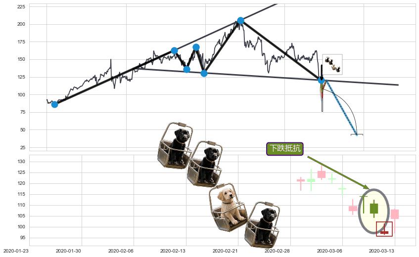| 7 🅚:吊颈线(上吊线) ➕ 📐:扩散三角反转下行突破支撑位破位, 猜想持续下沉下跌,被突破的支撑位已变为阻力位 ☞ 看空信号 ⇥ 【🅚线】交织【图形】⇥ 综合量化分数: 46 | > |