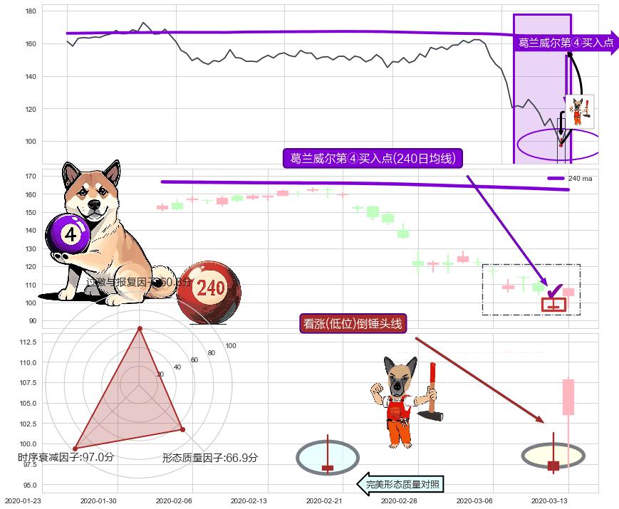 | 2 🅚:早晨之星(黎明之星) ➕ 🎢:葛兰威尔第④买入点买入点信号形成后,猜想后续走势持续反弹上升(均值回复) ☞ 看多信号 ⇥ 【均线】交织【🅚线】⇥ 综合量化分数: 51 | > |