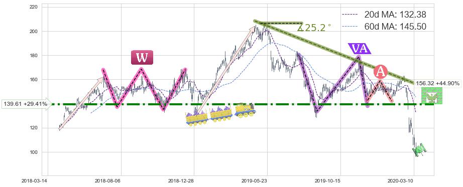 ➢ AI预测: 假定反转如期而至,第❶价格目标位置(2020-05-20, 138.98)