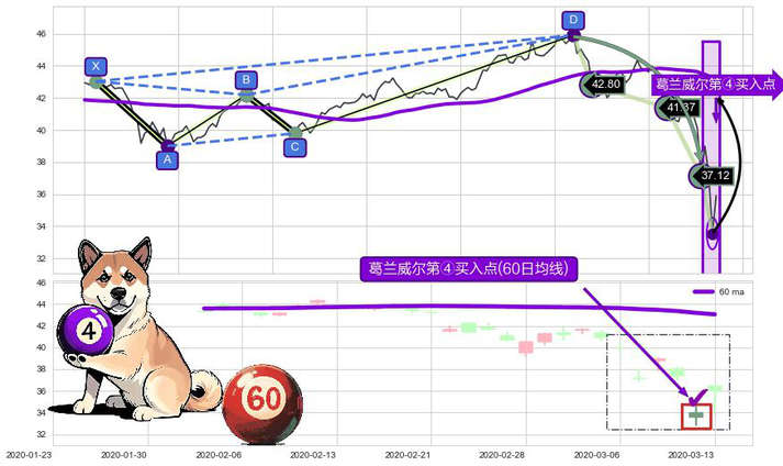 ➣ 🕰 价格走势在2020-03-10至2020-03-13期间形成葛兰威尔第④买入点,残存影响值:13.66